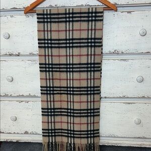 Vintage Burberry 100% Cashmere Scarf in the iconic Classic Check. Made in England, measures 55” long, and is in great condition.