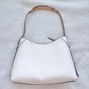 Tory Burch T Monogram Pebble Leather Embossed Messenger Bag - White NWOT