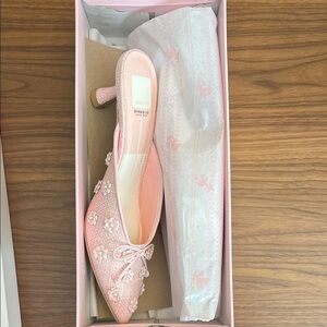 Chic pink mules with elegant embellishments. Perfect for a stylish look.