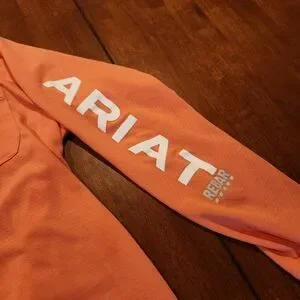 Stay stylish and comfortable with the Ariat women's Long Sleeve Shirt. Perfect for casual outings, this shirt features a vibrant orange color and a classic design.