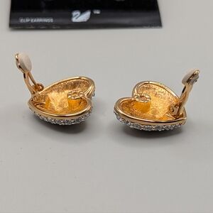 Swarovski Signature Crystal Studded Heart Clip Earrings. New on original card NWT