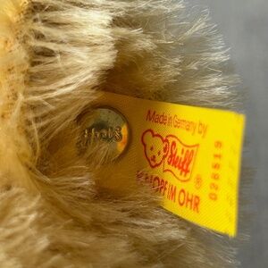 1997 Steiff Mohair plush bear, MS Margarete hat, ID button and tags attached, jointed, growler sound.