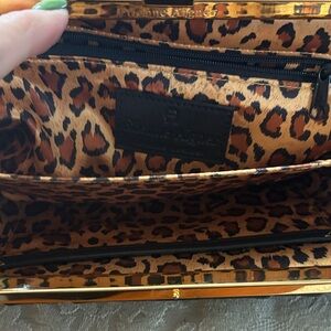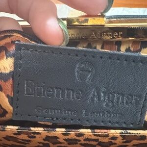 Etienne Aigner Black Leather Clutch with Gold Accent