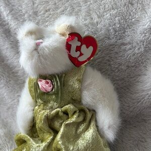 In great condition with original TY tag! This is Katrina from the 1993 TY Attic Treasures collection — a charming white plush cat dressed in a deep green velvet outfit with a pink rose accent 🌹🐾. She’s part of the iconic “Feline Fine” release and a must-have for vintage TY collectors and nostalgic plush fans.