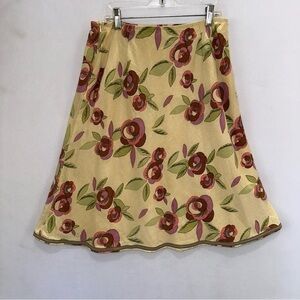 J. Jill Yellow Floral A-line Tencel Skirt 10
