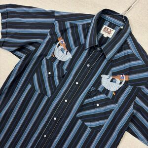 ELY CATTLEMAN Striped Short Sleeve Western Shirt Embroidered Armadillo Size L