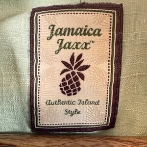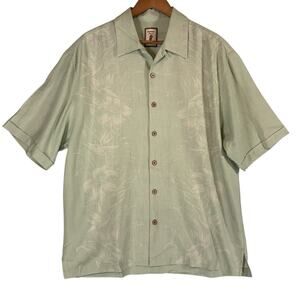 JAMAICA JAXX Mens 100% Silk SIZE LARGE Palm Hawaiian Button Camp Shirt Green