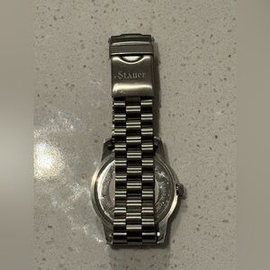 Stauer Mens Regatta Yacht Racing Flag Blue Face Silver tone Watch 24580 vintage