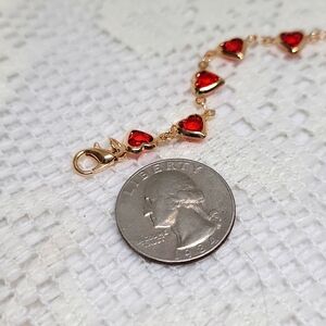 Heart Charm Bracelet Gold Tone Chain Adjustable to 9 Inches Red New
