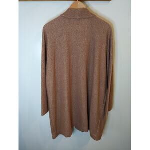 LANDS END Women's Brown Heathered Open Front Cardigan 2X Cotton Blend Pockets