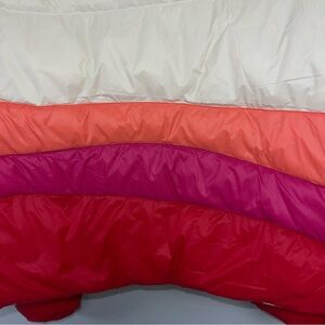 Classic cozy winter puffer is back in a brand new, stitched sunbeam pattern. Don’t worry, she’s still 100% recycled as always.