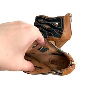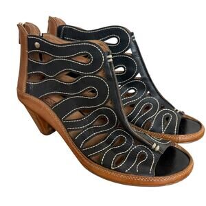 Pikolinos Java Peep Toe Sandals Cutout Zip Back Brown Black Womens 42 / US 11