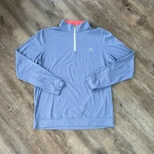 Stylish blue quarter-zip pullover. Perfect for casual wear.