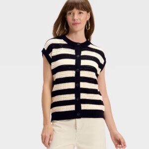 NWT black and cream striped Universal Thread sleeveless button-front sweater S