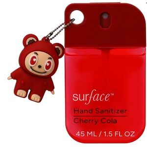Keep your hands clean with the Cherry Cola Hand Sanitizer. This vibrant red sanitizer comes with an adorable bear keychain, perfect for hygiene on the go.