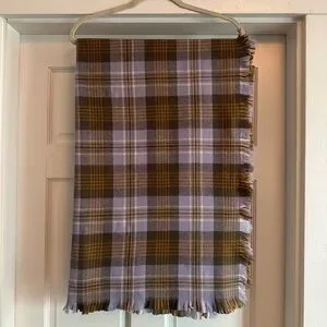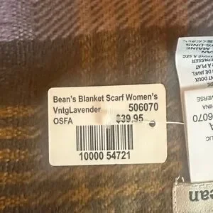 Stylish plaid scarf by L.L. Bean. Features a blend of brown and purple tones. Perfect for adding warmth and style.