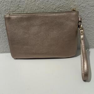Adrienne Vittadini RFID Portable Charger Charging Wristlet Clutch Gold Metallic Leather