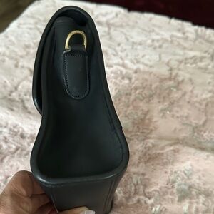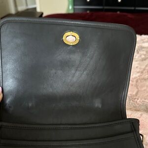 This Coach black leather handbag featuring a gold clasp is in good condition and the leather is awesome is just missing hangtag n crossbody strap…I will add another hangtag but chain is in silver..