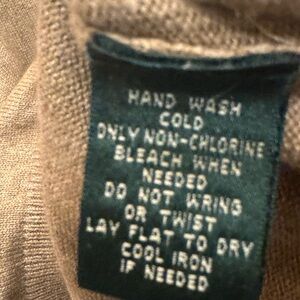 Elegant tan turtleneck sweater by Lauren Ralph Lauren. Luxurious silk and cashmere blend. Size Petite Large.