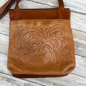Patricia Nash Crossbody Purse Brown Tooled Leather Floral Flap Hippie Boho