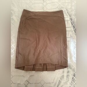 Sophisticated brown skirt from Le Chateau, crafted in Canada. This sleek piece features a tailored silhouette with subtle curved front seam detailing and unique pleats at the back hem for a refined touch.
