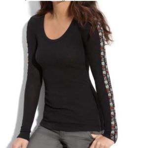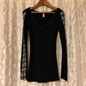 Free People Black Long Sleeve Top with Patterned Sleeves
