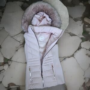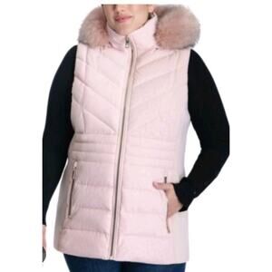 MICHAEL Michael Kors Plus Size X Cheetah Print Faux-Fur-Trim Hooded Vest in pink