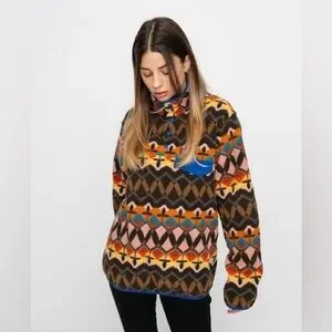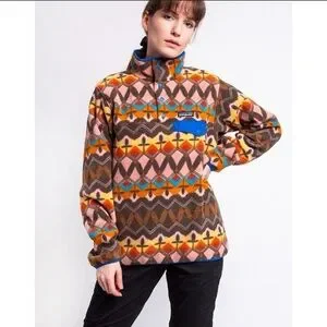 Patagonia Companions Big Anthos Pink Tribal Aztec Print Lightweight Synchilla Snap-T Fleece Long Sleeve Pullover. 100% Recycled Polyester. Size Medium. NWT.