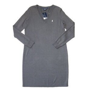 NWT Ralph Lauren Sport V-neck Shift in Gray Cotton Merino Wool Sweater Dress XL