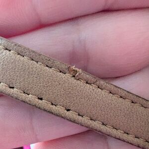 It's been loved! 😁 Cleaned thoroughly inside and out, conditioned, and buffed. The leather shows wear with this color in darkened areas, like along the piping (see pictures). It's not a bad look though; it adds character to the bag, imo. There's an ink spot on the zipper fabric and a dark spot inside the bag that did not come out with cleaning. It doesn't show on the outside, however. There's also a tiny chip in the leather on the strap (last pic, super zoomed up).
