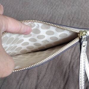 Chic metallic wristlet by Kate Spade. Features a convenient wrist strap.