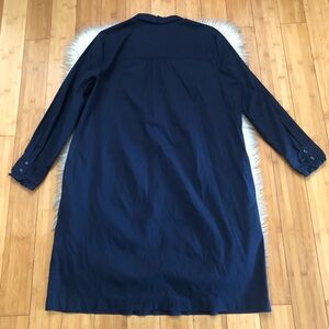 Lafayette 148 Preppy Collared Ruffled Relaxed Fit Long Sleeves Navy Dress XL