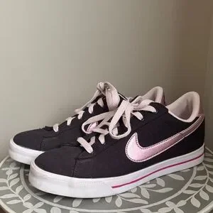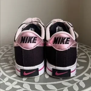 Nike Women's Black and Light Pink Sneakers sz 9, in good pre-owned condition with minor wear on soles