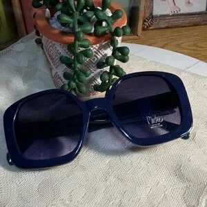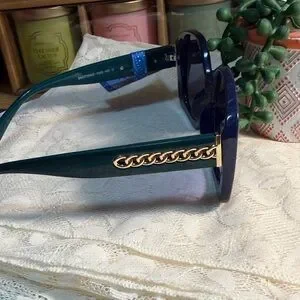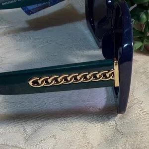 Chic oversized sunglasses by Mackie. Navy blue/emerald green frames with gold accents that add a modern flair. New with tags!!