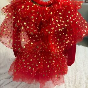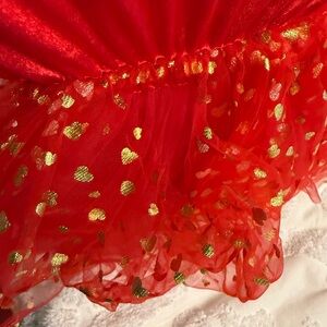 Adorable red tulle dress with gold heart accents. Perfect for Valentines Day Party or Photo session! Small tear in tulle see photos.