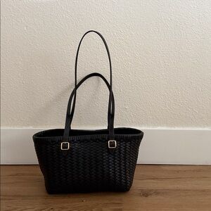 Chic woven design. Luxurious black leather. Perfect for any occasion. Durable and stylish.