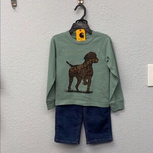 NWT Carhartt Kids Sz 24mo Mint Dog Graphic LSS and Matching Denim Pant Set