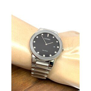 Citizen Men's Watch AU1060-51G Eco Drive Diamond Accent Black Dial Silver Steel $450 (AY8241Y)