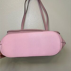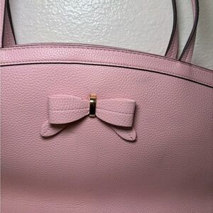 Elegant blush pink shoulder bag with bow detail. Perfect for any occasion.