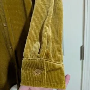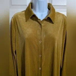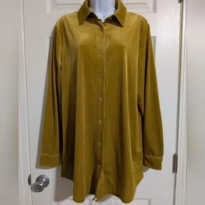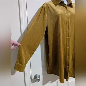 Soft Surroundings Textured Velvet Boyfriend Shirt Women's Large Amber Yellow