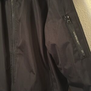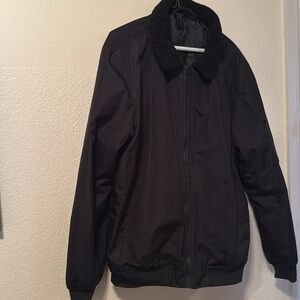 Soul Star England light bomber jacket faux Sherpa collar. Lightweight and filled for warmth. Nylon material. Interior pocket, arm zipper pocket and two side pockets.