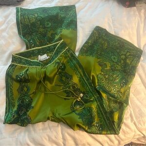 ALEMAIS silk satin Solaris pants, green, size 2 US