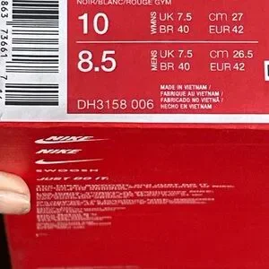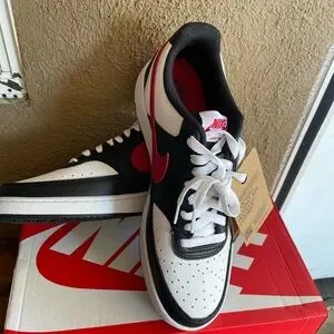 Nike Black and White Sneakers with Red Swoosh for women size 10 for men 8.5