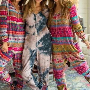 natural life fleece onesie. zips up the front, colorful print. comfy for pajamas or lounging. in good used condition, see photos and feel free to ask questions!