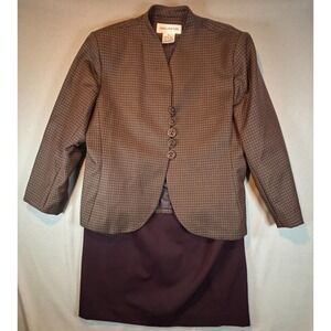 Jones New York Blazer Skirt Suit Set Women's 16 Brown Two Piece Career Outfit