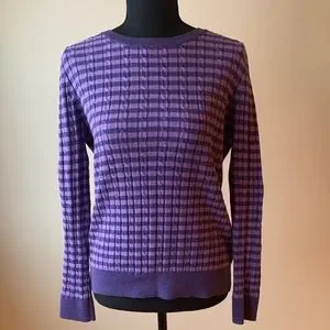 Chic purple plaid sweater by Talbots. Ideal for casual wear.