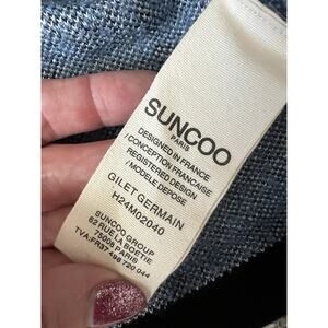 SUNCOO Paris Diane Blue Plaid Knit Boucle Cardigan Jacket Blazer Sz T3 US L