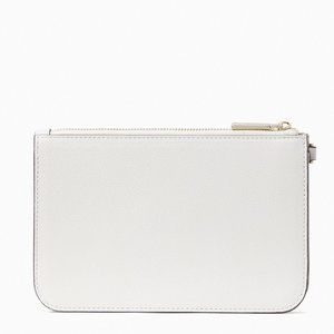 Exterior: wristlet: front slip pocket, pouch: back slip pocket