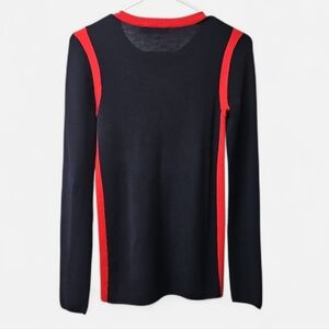 Tory Burch Sweater Navy Blue Red Logo 100% Merino Wool