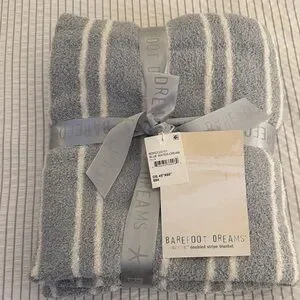Barefoot Dreams CozyChic Blanket in Soft Gray and Cream